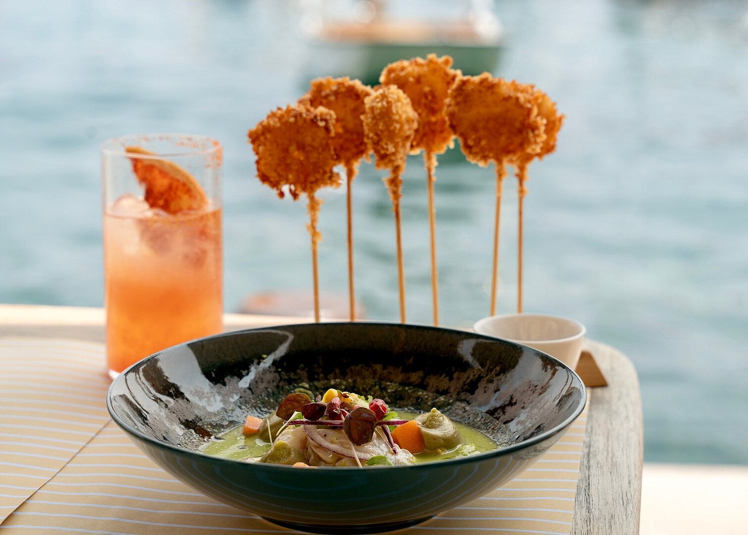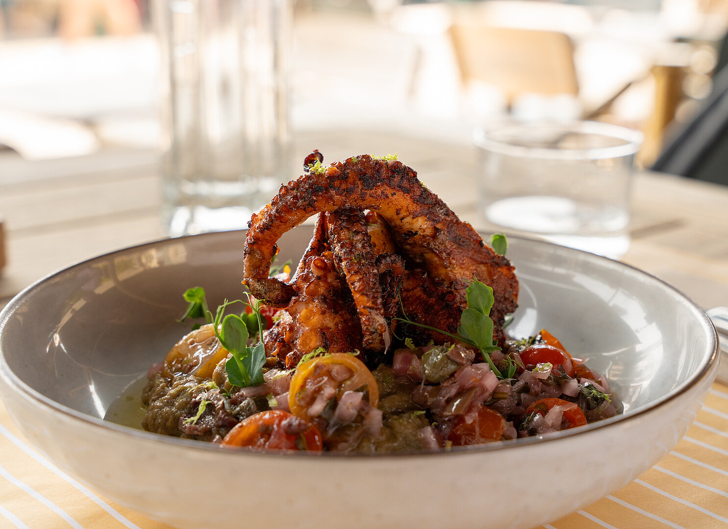 A cuisine for sharing, combining Mediterranean flavours and street food from the World. Seasonal, local and quality ingredients. All concocted in-house by the Chef and his brigade.